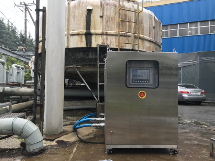 Hello. The product to be introduced today is the "scale removal device." The "scale removal device" prevents the cooling water scale from...